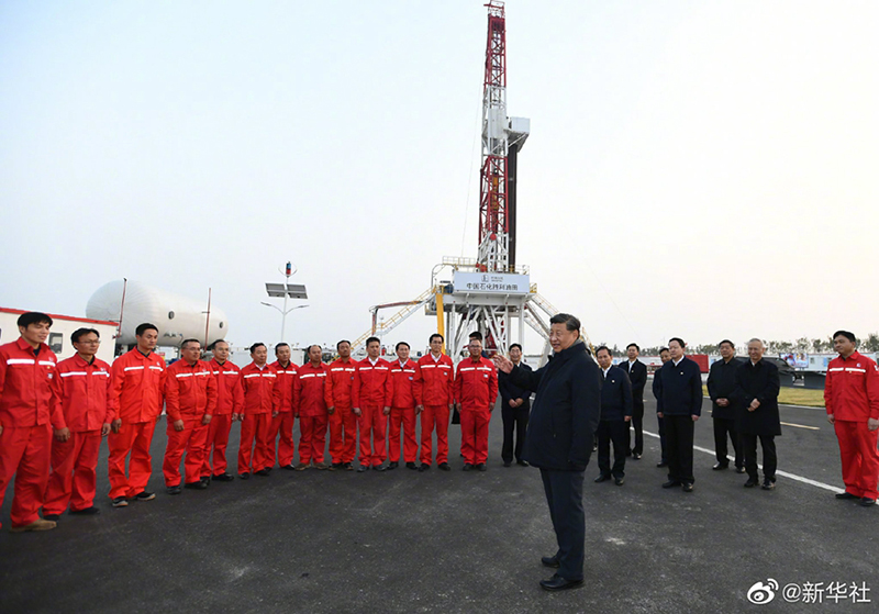 21日,習(xí)近平總書記繼續(xù)在山東省東營(yíng)市考察調(diào)研。他先后來到黃河三角洲農(nóng)業(yè)高新技術(shù)產(chǎn)業(yè)示范區(qū)、墾利區(qū)董集鎮(zhèn)楊廟社區(qū)、勝利油田勘探開發(fā)研究院和鉆井平臺(tái),了解黃河三角洲鹽堿地綜合利用和現(xiàn)代農(nóng)業(yè)發(fā)展、黃河灘區(qū)和原蓄滯洪區(qū)居民遷建、勝利油田創(chuàng)新發(fā)展等情況。