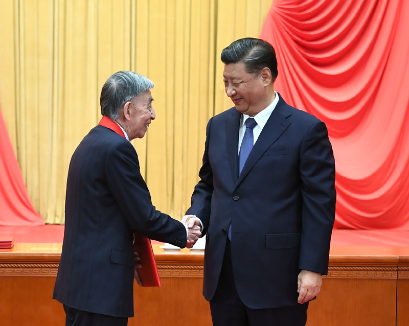 11月3日,2020年度國家科學(xué)技術(shù)獎(jiǎng)勵(lì)大會(huì)在北京人民大會(huì)堂隆重舉行。中共中央總書記、國家主席、中央軍委主席習(xí)近平向獲得2020年度國家最高科學(xué)技術(shù)獎(jiǎng)的清華大學(xué)王大中院士頒獎(jiǎng)。圖片來源:新華網(wǎng)