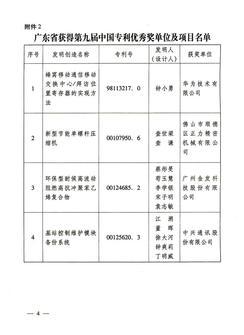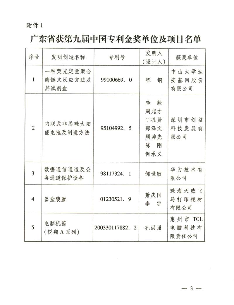 附件:1.廣東省獲得第九屆中國(guó)專利金獎(jiǎng)單位及項(xiàng)目名單