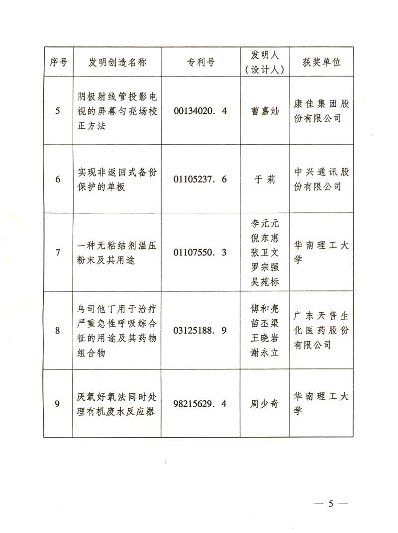 2.廣東省獲得第九屆中國(guó)專利優(yōu)秀獎(jiǎng)單位及項(xiàng)目名單