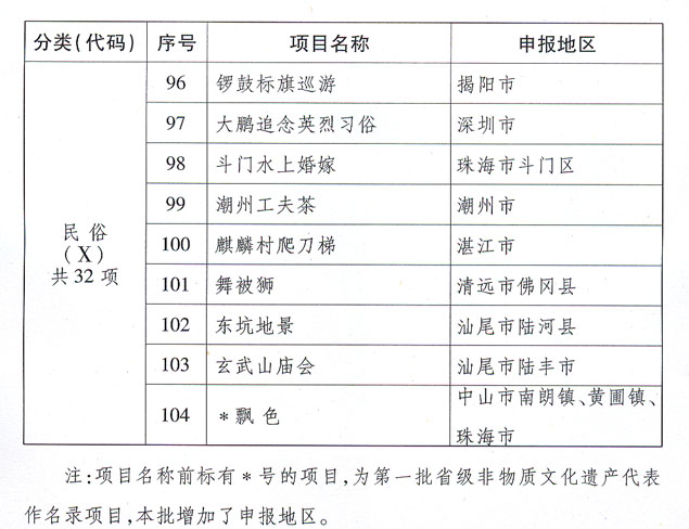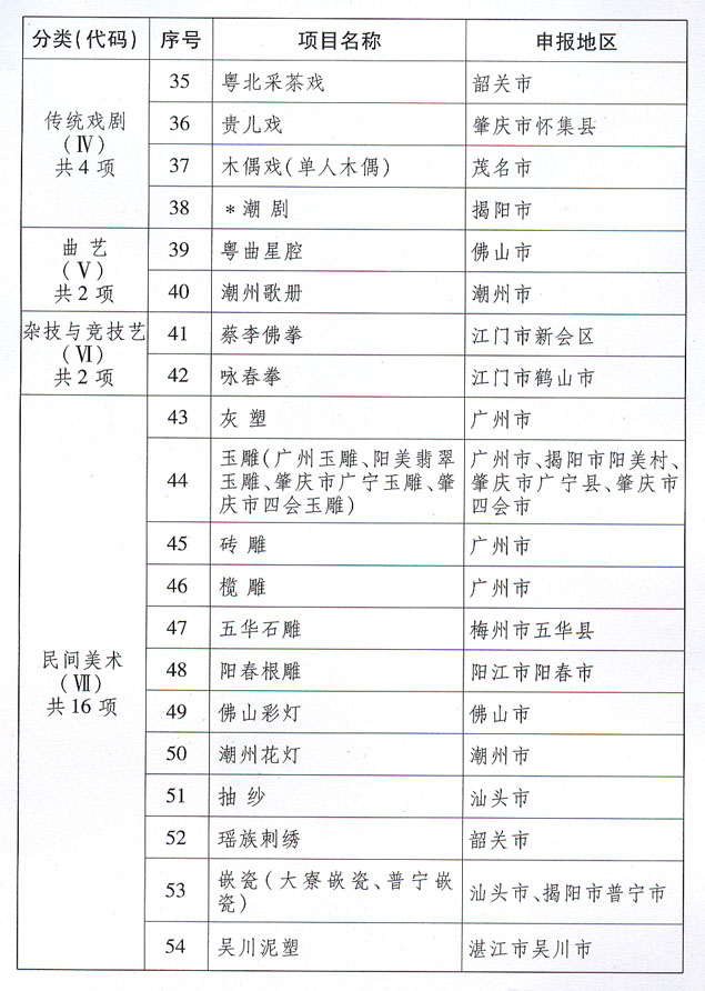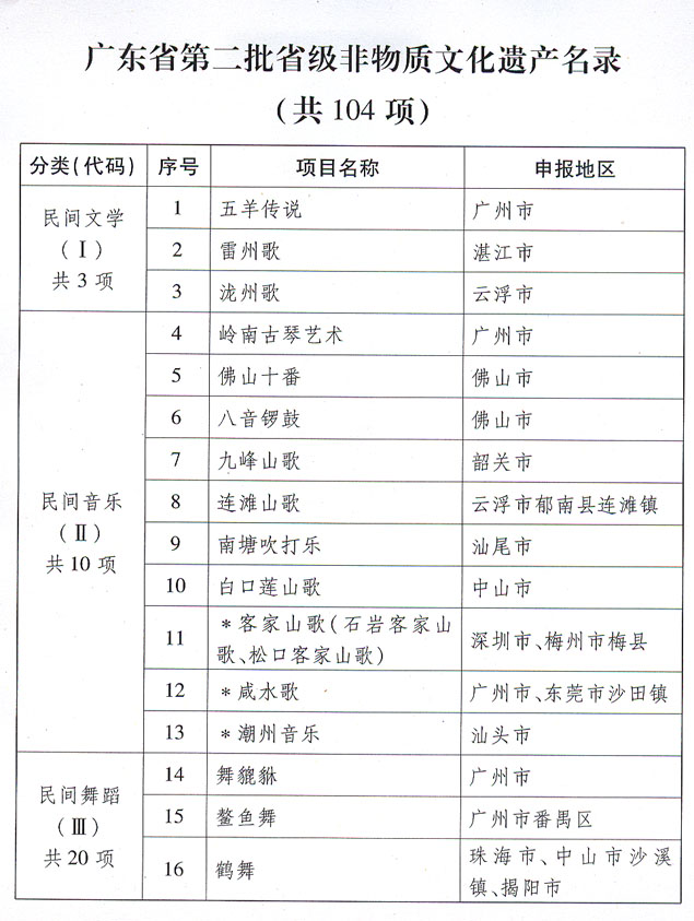 關(guān)于批準(zhǔn)并公布廣東省第二批省級非物質(zhì) 文化遺產(chǎn)名錄的通知