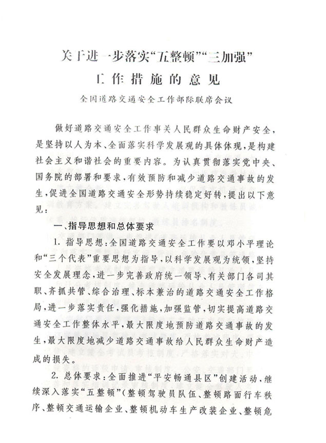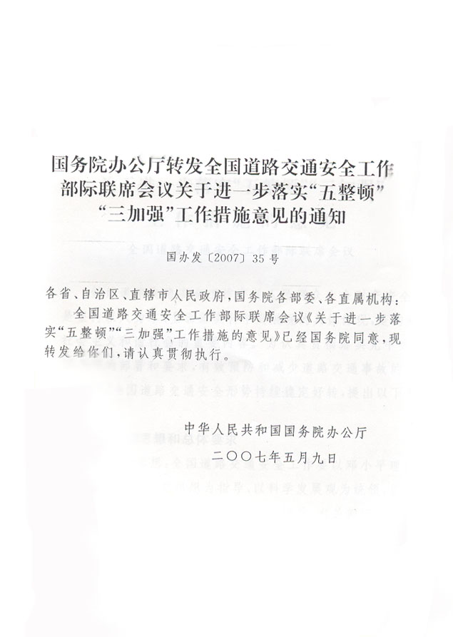 名稱: 轉(zhuǎn)發(fā)國務(wù)院辦公廳轉(zhuǎn)發(fā)全國道路交通安全工作部際聯(lián)席會議關(guān)于進(jìn)一步落實“五整頓”“三加強(qiáng)”工作措施意見的通知