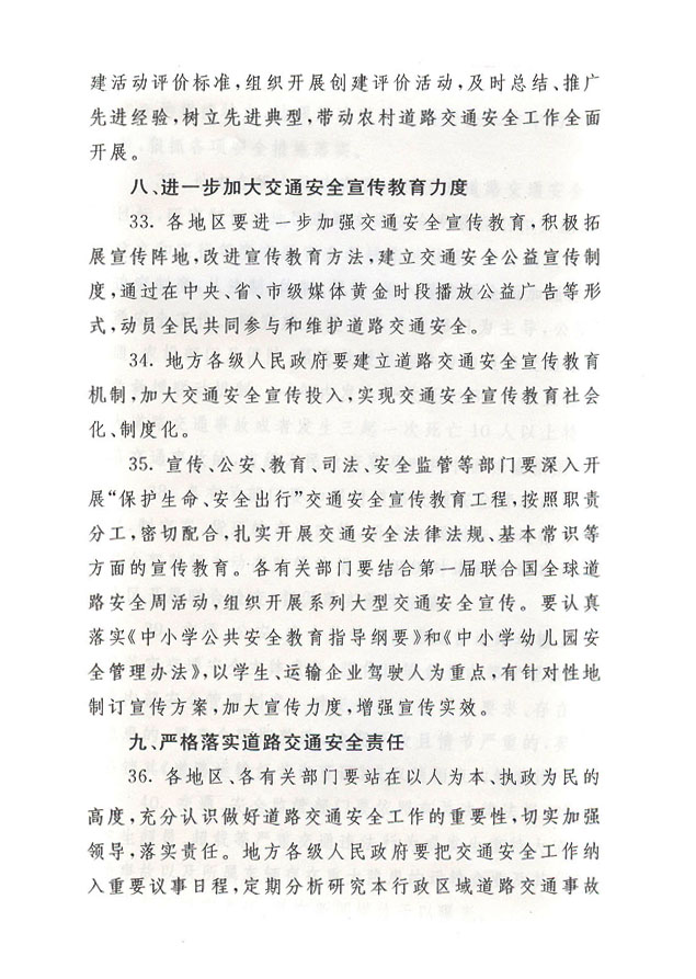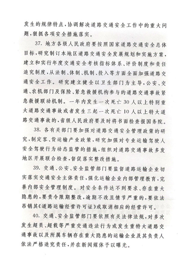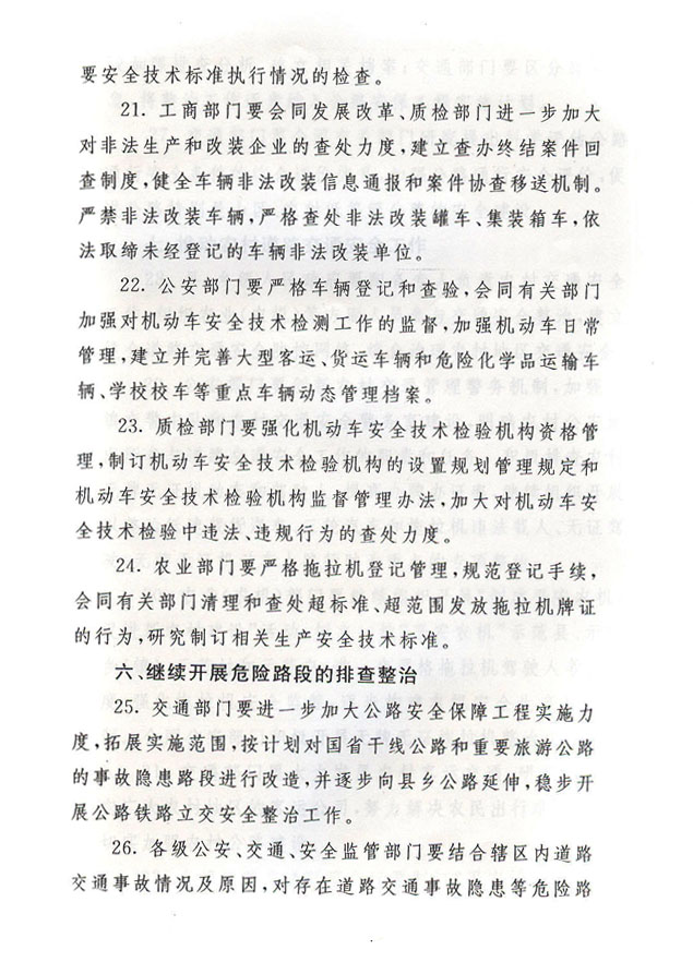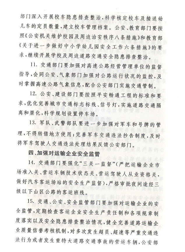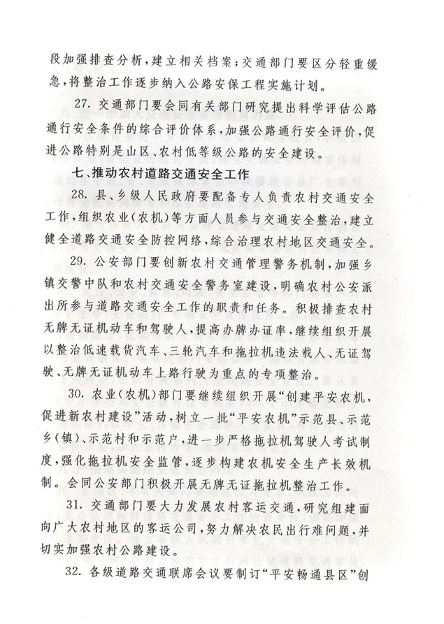 三、加強(qiáng)檢查指導(dǎo)。各地、各有關(guān)部門要對貫徹落實國辦發(fā)〔2007〕35號文情況加強(qiáng)檢查指導(dǎo),發(fā)現(xiàn)問題及時整改;對工作措施不落實,發(fā)現(xiàn)重大安全隱患不及時整改的,要追究相關(guān)責(zé)任人的責(zé)任。各地級以上市貫徹落實國辦發(fā)〔2007〕35號文情況要于2007年12月15日前書面報省預(yù)防道路交通事故聯(lián)席會議辦公室。