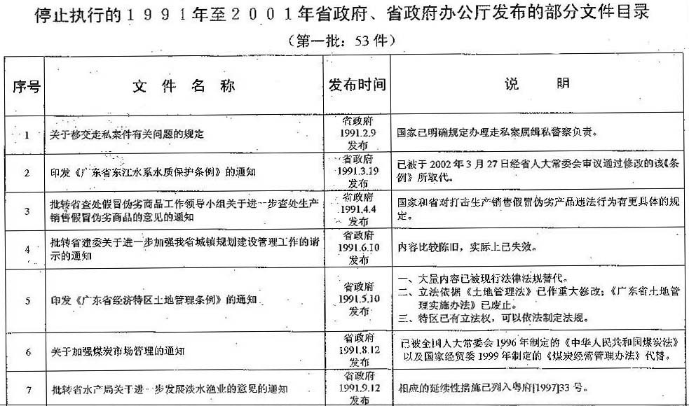 名稱: 關(guān)于停止執(zhí)行1991年至2001年省政府、省政府辦公廳發(fā)布的部分文件的通知