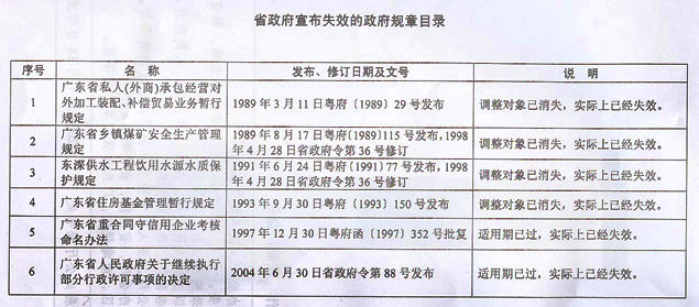 經(jīng)2007年12月24日廣東省人民政府第十屆130次常務(wù)會議通過,決定對《廣東省私人(外商)承包經(jīng)營對外加工裝配、補(bǔ)償貿(mào)易業(yè)務(wù)暫行規(guī)定》等6項政府規(guī)章宣布失效(目錄附后),現(xiàn)予公布,自公布之日起施行。