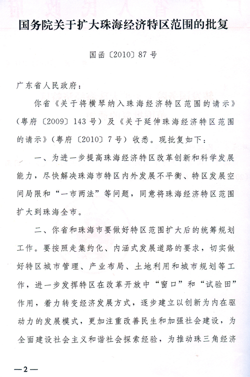 | 名稱: | 轉(zhuǎn)發(fā)國務(wù)院關(guān)于擴大珠海經(jīng)濟特區(qū)范圍批復(fù)的通知 | ||