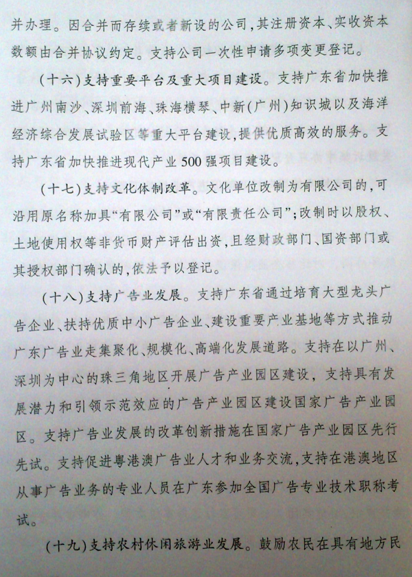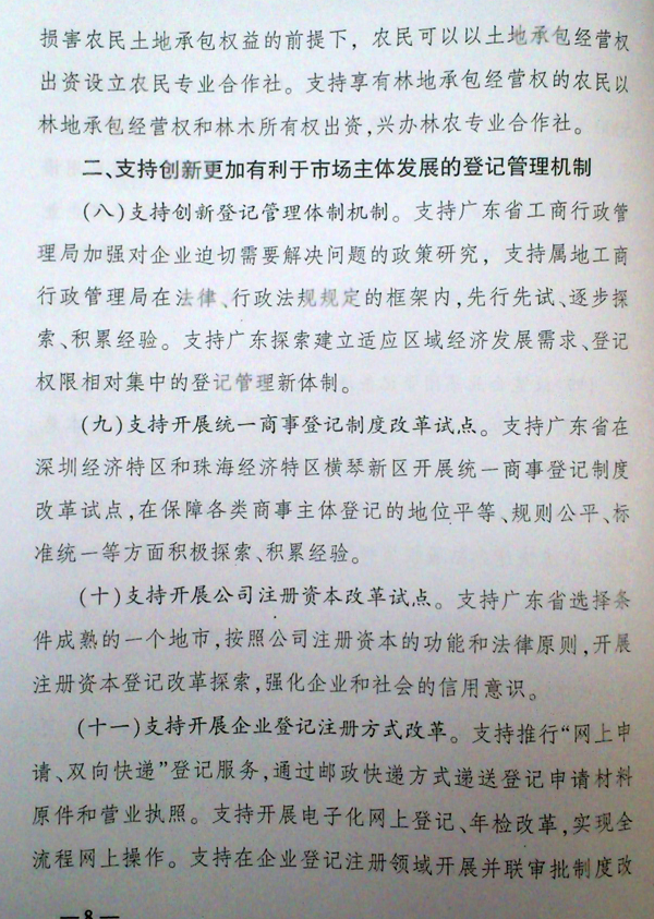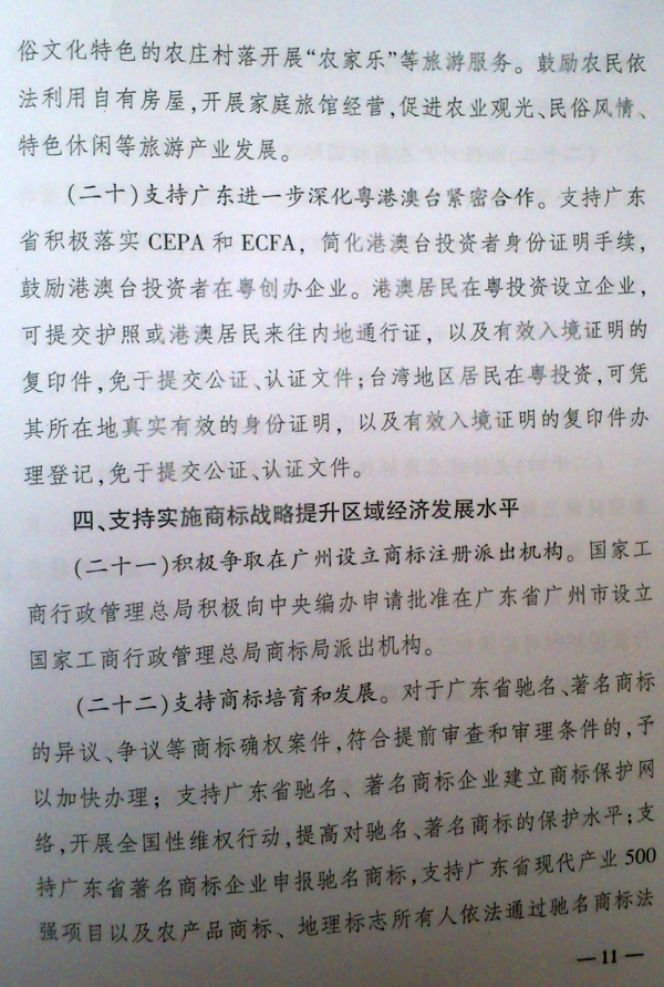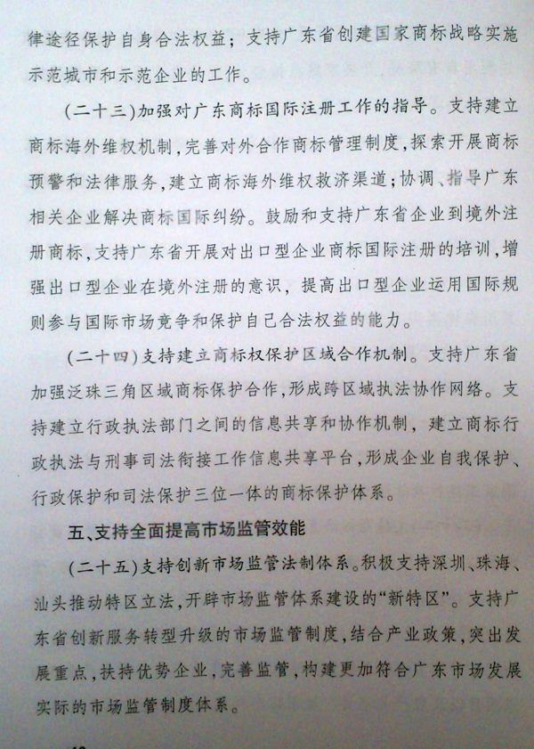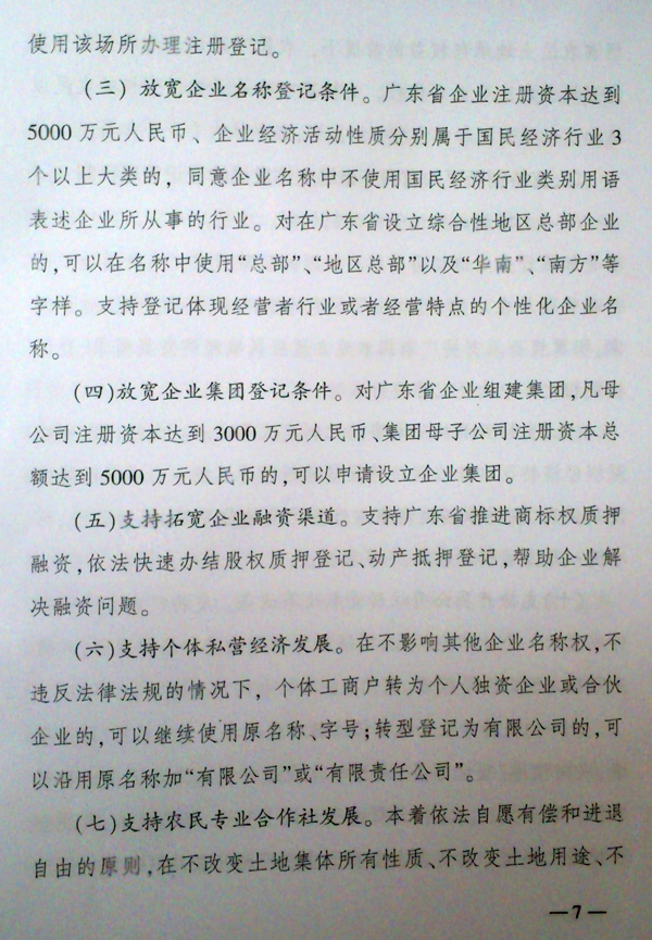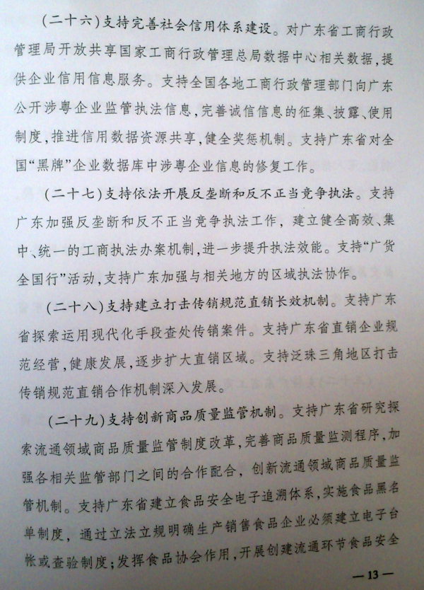 各地級(jí)以上市人民政府,各縣(市、區(qū))人民政府,省政府各部門、各直屬機(jī)構(gòu): 近日,國(guó)家工商總局印發(fā)了《關(guān)于支持廣東加快轉(zhuǎn)型升級(jí)建設(shè)幸福廣東的意見(jiàn)》(以下簡(jiǎn)稱《意見(jiàn)》),提出了充分發(fā)揮工商行政管理職能支持我省改革發(fā)展的一系列政策措施。為認(rèn)真抓好《意見(jiàn)》的貫徹落實(shí),經(jīng)省人民政府同意,現(xiàn)將《意見(jiàn)》轉(zhuǎn)發(fā)給你們。同時(shí),提出以下要求,請(qǐng)一并貫徹執(zhí)行。 一、充分認(rèn)識(shí)《意見(jiàn)》出臺(tái)的重大意義?!兑庖?jiàn)》是國(guó)家工商總局站在支持廣東當(dāng)好推動(dòng)科學(xué)發(fā)展、促進(jìn)社會(huì)和諧的排頭兵,率先全面建成小康社會(huì)的戰(zhàn)略高度,主動(dòng)服務(wù)、積極服務(wù)、創(chuàng)造性服務(wù)地方的重大舉措?!兑庖?jiàn)》突出科學(xué)發(fā)展主題和轉(zhuǎn)變經(jīng)濟(jì)發(fā)展方式主線,以“寬入嚴(yán)管”為原則,對(duì)市場(chǎng)主體服務(wù)放得最寬、權(quán)力下放得最徹底、從重審批轉(zhuǎn)向重監(jiān)管措施最具體,包含了一批首創(chuàng)性政策,充分體現(xiàn)了解放思想、改革創(chuàng)新的要求,完全符合廣東的實(shí)際和發(fā)展需要。各地、各部門要充分認(rèn)識(shí)《意見(jiàn)》出臺(tái)的重大意義,把貫徹實(shí)施《意見(jiàn)》作為深化市場(chǎng)監(jiān)管體系建設(shè)、促進(jìn)經(jīng)濟(jì)平穩(wěn)健康可持續(xù)發(fā)展的重要任務(wù)擺上重要日程,切實(shí)抓緊抓好,抓出成效。 二、用足用好《意見(jiàn)》明確的政策措施?!兑庖?jiàn)》提出的5個(gè)方面32條具體措施,針對(duì)性強(qiáng)、支持力度大,工商行政管理部門要認(rèn)真抓好貫徹落實(shí)。要把國(guó)家工商總局下放的權(quán)限管好用好,把各項(xiàng)寬松登記管理政策落實(shí)到位,最大限度地方便企業(yè),促進(jìn)各類市場(chǎng)主體加快發(fā)展;要本著先行先試的精神和有利于市場(chǎng)主體發(fā)展的原則,推進(jìn)工商登記管理體制機(jī)制改革創(chuàng)新,做好試點(diǎn)工作;要堅(jiān)持“寬入嚴(yán)管”統(tǒng)籌并重,加快完善市場(chǎng)監(jiān)管體系,全面提高市場(chǎng)監(jiān)管效能;要提高商標(biāo)工作水平,加大馳名商標(biāo)、著名商標(biāo)創(chuàng)建和保護(hù)力度,扎實(shí)推進(jìn)商標(biāo)品牌戰(zhàn)略實(shí)施;要認(rèn)真實(shí)施促進(jìn)產(chǎn)業(yè)結(jié)構(gòu)調(diào)整和轉(zhuǎn)型升級(jí)的導(dǎo)向性政策,支持我省構(gòu)建現(xiàn)代產(chǎn)業(yè)體系和深化改革、擴(kuò)大開(kāi)放。省工商局要制訂具體實(shí)施方案,明確分工和責(zé)任,用足用好國(guó)家工商總局的支持政策,加快構(gòu)建更加適應(yīng)我省經(jīng)濟(jì)社會(huì)發(fā)展需要的工商行政管理體制機(jī)制。 三、強(qiáng)化《意見(jiàn)》實(shí)施中的協(xié)作配合。各地、各有關(guān)部門要根據(jù)《意見(jiàn)》提出的任務(wù)措施,加強(qiáng)對(duì)《意見(jiàn)》實(shí)施的協(xié)作配合,加大對(duì)工商行政管理改革創(chuàng)新的支持力度。各級(jí)發(fā)展改革、經(jīng)濟(jì)和信息化、財(cái)政、教育、文化、農(nóng)業(yè)、林業(yè)、審計(jì)、監(jiān)察、質(zhì)監(jiān)、食品藥品監(jiān)管、法制、機(jī)構(gòu)編制等部門要結(jié)合各自職能,支持配合工商行政管理部門開(kāi)展改革試點(diǎn)、建設(shè)信息化監(jiān)管體系和廣告產(chǎn)業(yè)園區(qū)、推進(jìn)并聯(lián)審批、做好流通環(huán)節(jié)商品質(zhì)量監(jiān)管和消費(fèi)者權(quán)益保護(hù)等工作。承擔(dān)改革試點(diǎn)任務(wù)或項(xiàng)目建設(shè)的廣州、深圳、珠海、汕頭、惠州、東莞等市,要加強(qiáng)組織協(xié)調(diào),認(rèn)真開(kāi)展試點(diǎn)或相關(guān)配合工作,大膽探索,注意總結(jié),力爭(zhēng)早出成果、出好經(jīng)驗(yàn)。省工商局在落實(shí)各項(xiàng)改革創(chuàng)新任務(wù)措施的同時(shí),要發(fā)揮牽頭協(xié)調(diào)作用。 四、加快推進(jìn)政府職能轉(zhuǎn)變。各地、各部門要深刻領(lǐng)會(huì)貫穿《意見(jiàn)》始終的解放思想、改革創(chuàng)新的靈魂和精神實(shí)質(zhì),學(xué)習(xí)工商行政管理部門勇于探索、勇于突破、從改革自身做起的堅(jiān)定決心和勇氣,圍繞加快完善社會(huì)主義市場(chǎng)經(jīng)濟(jì)體制的根本目的,打破與市場(chǎng)機(jī)制不相適應(yīng)的部門權(quán)力利益格局,進(jìn)一步精簡(jiǎn)行政審批事項(xiàng),規(guī)范審批流程,加快制訂轉(zhuǎn)移職能目錄,更好地發(fā)揮市場(chǎng)配置資源的基礎(chǔ)性作用。要切實(shí)改變嚴(yán)準(zhǔn)入、寬監(jiān)管的傳統(tǒng)模式,加快向“寬準(zhǔn)入、嚴(yán)監(jiān)管”轉(zhuǎn)變,特別要結(jié)合當(dāng)前我省正在深入開(kāi)展的“三打兩建”工作,加強(qiáng)社會(huì)信用體系和市場(chǎng)監(jiān)管體系建設(shè),有力規(guī)范市場(chǎng)秩序。要強(qiáng)化公共服務(wù)職能,加強(qiáng)效能建設(shè),拓展服務(wù)領(lǐng)域,不斷提升服務(wù)水平,構(gòu)建更加符合我省市場(chǎng)發(fā)展實(shí)際的管理與服務(wù)工作格局,創(chuàng)