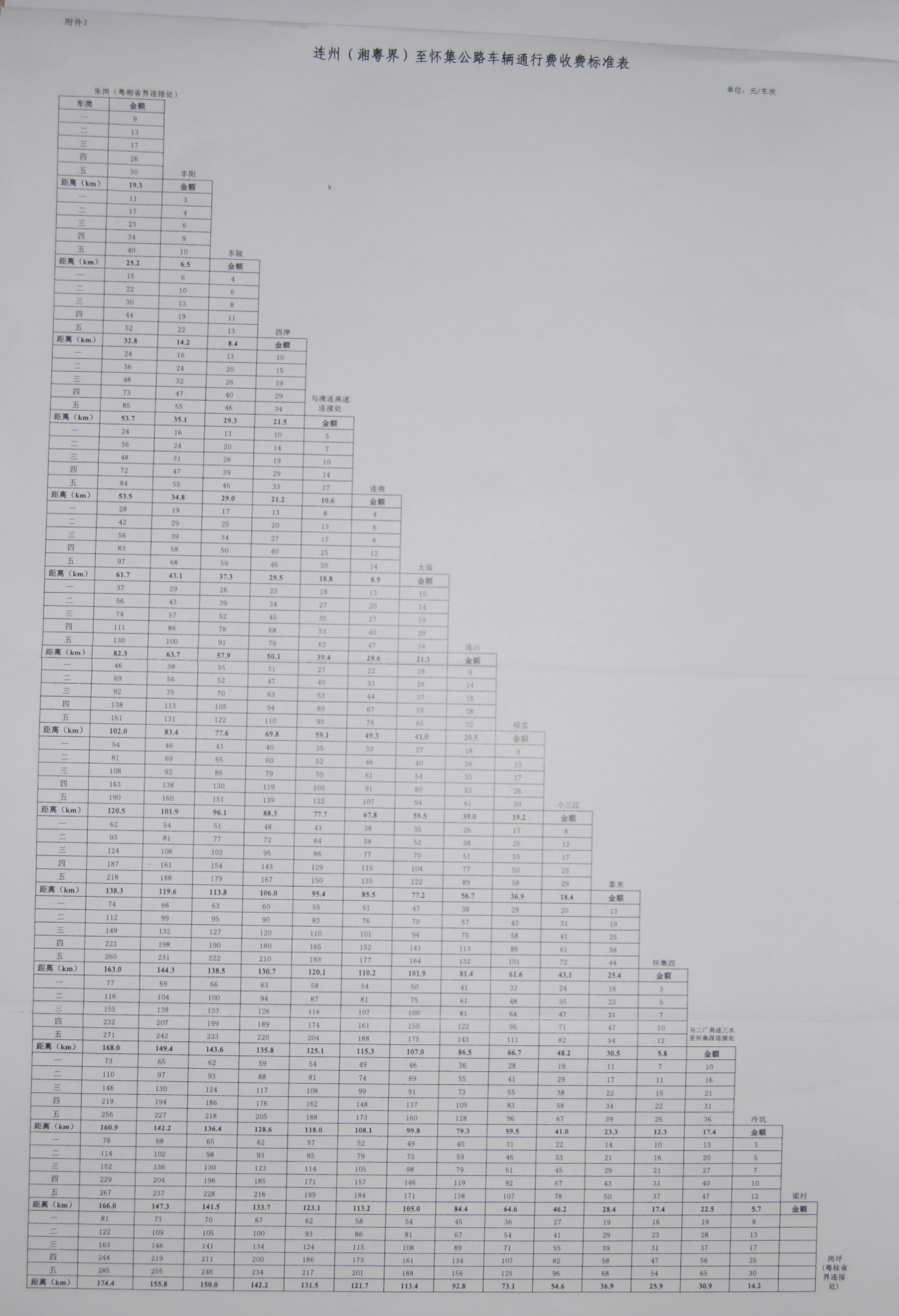 2.連州(湘粵界)至懷集公路車輛通行費(fèi)收費(fèi)標(biāo)準(zhǔn)表 ? ? ? ? 省府辦公廳 2013年11月19日 |