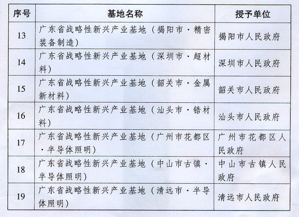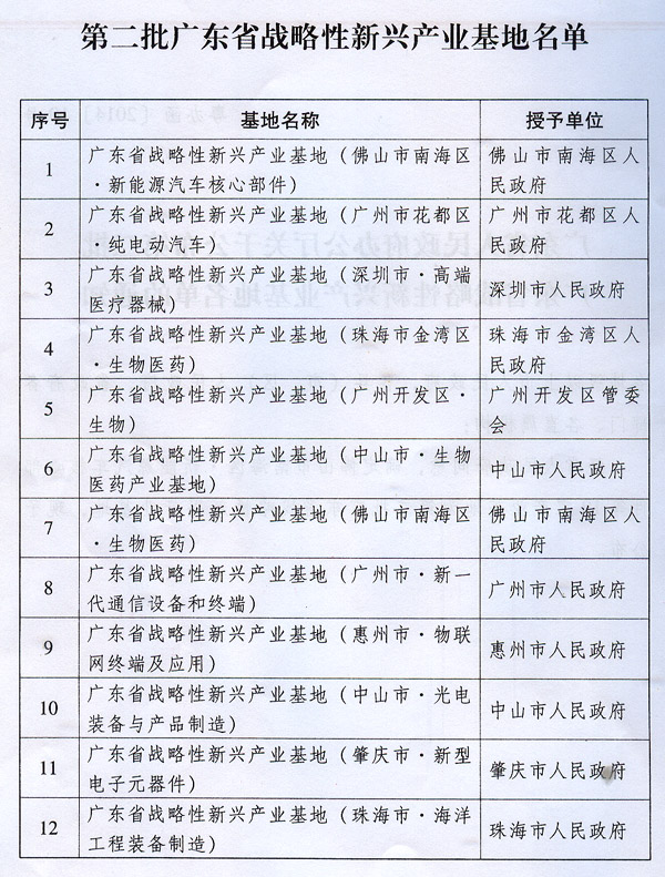 廣東省人民政府辦公廳關于公布第二批 廣東省戰(zhàn)略性新興產(chǎn)業(yè)基地名單的通知