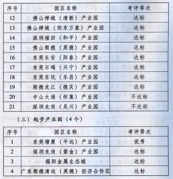 ? 按照《廣東省產(chǎn)業(yè)園建設(shè)管理考核評價辦法》有關(guān)規(guī)定,對評定為優(yōu)秀等次的湛江產(chǎn)業(yè)園、肇慶大旺產(chǎn)業(yè)園、江門產(chǎn)業(yè)園、深圳(河源)產(chǎn)業(yè)園、珠海(陽江)產(chǎn)業(yè)園、深圳南山(龍川)產(chǎn)業(yè)園、佛山順德(廉江)產(chǎn)業(yè)園、深圳羅湖(河源源城)產(chǎn)業(yè)園、深圳鹽田(東源)產(chǎn)業(yè)園、中山火炬(陽西)產(chǎn)業(yè)園、佛山順德(云浮新興新成)產(chǎn)業(yè)園、東莞塘廈(平遠(yuǎn))產(chǎn)業(yè)園等12個園區(qū)予以全省通報表揚(yáng),并按照有關(guān)規(guī)定給予相應(yīng)獎勵。對考評不達(dá)標(biāo)的中山大涌(懷集)產(chǎn)業(yè)園、深圳龍崗(吳川)產(chǎn)業(yè)園予以全省通報批評,并暫停其享受省產(chǎn)業(yè)轉(zhuǎn)移政策;對考核位于同類園區(qū)最后一名的揭陽產(chǎn)業(yè)園、深圳龍崗(吳川)產(chǎn)業(yè)園、廣東順德清遠(yuǎn)(英德)經(jīng)濟(jì)合作區(qū)予以黃牌警告,并按《廣東省產(chǎn)業(yè)園建設(shè)管理考核評價辦法》對當(dāng)?shù)卣饕I(lǐng)導(dǎo)進(jìn)行約談。 ? ? ? 廣東省人民政府 2014年7月29日 |