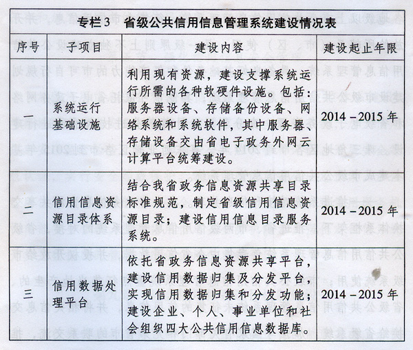 ? 信用信息系統(tǒng)建設是社會信用體系建設的基礎性工程。充分利用現(xiàn)代信息技術,按照統(tǒng)一的信用信息標準和技術規(guī)范,強化對社會成員信用信息的記錄、整合、共享和交換,為信用信息的應用提供載體和平臺。到2015年,建成省、市兩級聯(lián)通的公共信用信息管理系統(tǒng);到2020年,建成覆蓋所有社會成員的公共信用信息數(shù)據(jù)庫。