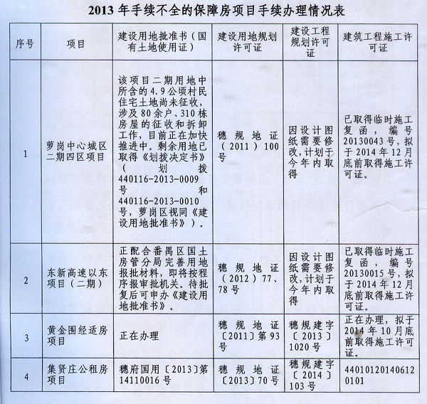省政府已責(zé)成有關(guān)市完善保障性住房項(xiàng)目建設(shè)手續(xù),并舉一反三,認(rèn)真落實(shí)項(xiàng)目建設(shè)的相關(guān)規(guī)定,手續(xù)不齊全的絕不開(kāi)工建設(shè)。相關(guān)項(xiàng)目手續(xù)完善情況如下: