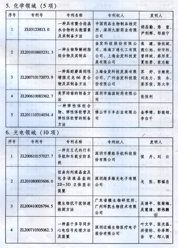 ? 廣東省人民政府關(guān)于表彰2014年廣東省 專利獎(jiǎng)單位和個(gè)人的通報(bào) ? 各地級(jí)以上市人民政府,各縣(市、區(qū))人民政府,省政府各部門、各直屬機(jī)構(gòu): 根據(jù)《廣東省專利獎(jiǎng)勵(lì)辦法》(粵府令第202號(hào)規(guī)定),經(jīng)廣東專利獎(jiǎng)評(píng)審委員會(huì)評(píng)審,省知識(shí)產(chǎn)權(quán)局審核,省政府決定授予“一種一元或多元?dú)饽z隔熱材料及其制備方法”等15項(xiàng)專利為2014年廣東專利金獎(jiǎng),給予每項(xiàng)10萬元的獎(jiǎng)勵(lì);授予“多聯(lián)式空調(diào)機(jī)組的控制方法”等55項(xiàng)專利為2014年廣東專利優(yōu)秀獎(jiǎng),給予每項(xiàng)5萬元的獎(jiǎng)勵(lì);授予瞿金平等10位發(fā)明人2014年廣東發(fā)明人獎(jiǎng),給予每人2萬元的獎(jiǎng)勵(lì);對(duì)我省獲得第十六屆中國專利金獎(jiǎng)的“基于拉伸流變的高分子材料塑化輸運(yùn)方法及設(shè)備”等4項(xiàng)專利、獲得第十六屆中國外觀設(shè)計(jì)金獎(jiǎng)的“電視機(jī)(PLY1201)”等2項(xiàng)專利給予每項(xiàng)100萬元獎(jiǎng)勵(lì),對(duì)我省獲得第十六屆中國專利優(yōu)秀獎(jiǎng)的“一種混合動(dòng)力汽車”等64項(xiàng)專利、獲得第十六屆中國外觀設(shè)計(jì)優(yōu)秀獎(jiǎng)的“汽車”等13項(xiàng)專利給予每項(xiàng)50萬元獎(jiǎng)勵(lì)。
