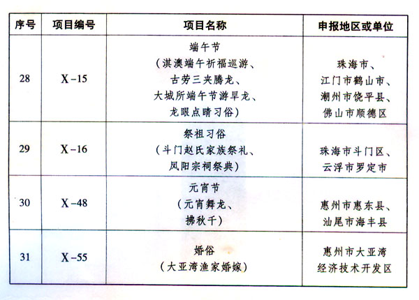 廣東省人民政府關(guān)于批準(zhǔn)并公布廣東省第六批省級非物質(zhì)文化遺產(chǎn)名錄的通知