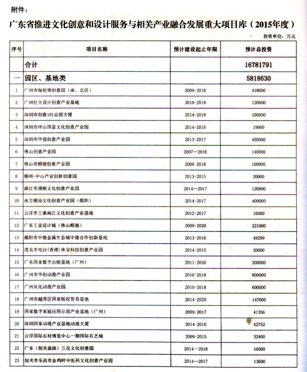 附件:廣東省推進(jìn)文化創(chuàng)意和設(shè)計(jì)服務(wù)與相關(guān)產(chǎn)業(yè)融合發(fā)展重大項(xiàng)目庫(kù)(2015年度)