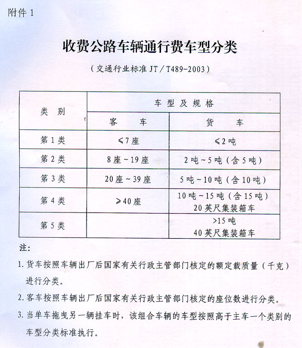 粵交費(fèi)〔2015〕1206號請示收悉。同意連平(贛粵界)至從化公路建成通車和收費(fèi)站收費(fèi)設(shè)施經(jīng)驗(yàn)收符合省聯(lián)網(wǎng)收費(fèi)技術(shù)要求后開始收費(fèi),收費(fèi)車型按國家統(tǒng)一標(biāo)準(zhǔn)進(jìn)行分類,一至五類車的收費(fèi)系數(shù)分別為1、1.5、2、3、3.5,收費(fèi)標(biāo)準(zhǔn)為0.6元/標(biāo)準(zhǔn)車公里;貨車實(shí)行完全計(jì)重收費(fèi),基本費(fèi)率為0.12元/噸·公里。