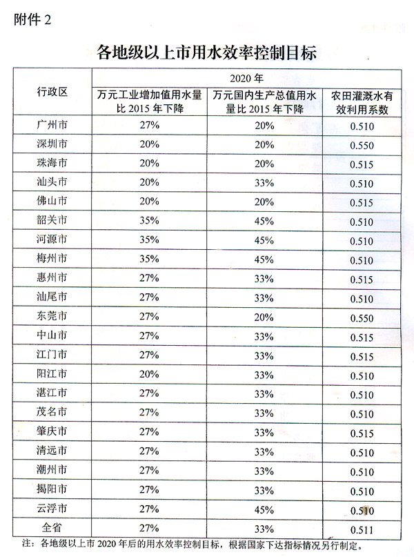 2.各地級(jí)以上市用水效率控制目標(biāo)