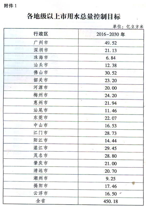 附件:1.各地級(jí)以上市用水總量控制目標(biāo)