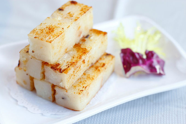 蘿卜糕,閩南地區(qū)稱之為“菜頭粿”,是中式傳統(tǒng)的糕點,采用在來米粉,又稱再來米粉,是中式點心中最好使用的粉,可以在制作中式小吃如蘿卜糕、肉圓、碗粿時用到。然后在米粉漿中加入腌制好的蘿卜絲等材料,上蒸籠蒸制而成的糕點小吃。蘿卜糕顏色潔白,質(zhì)地柔軟,味道鮮美。它是一種冬春適令小吃,家庭常在年節(jié)制作。這種糕點吃法多樣,在我國閩南、廣東等地區(qū)都可有賣,價格便宜,好吃又營養(yǎng)。