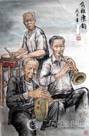 高明花鼓調(diào)是佛山市高明地區(qū)特有的傳統(tǒng)音樂形式。過去,當(dāng)?shù)剞r(nóng)村遇有紅白二事,盛行演奏喜喪吹打樂,多由六種樂曲組成,稱為“六音”,而“高明花鼓調(diào)”是“六音”中的迎親組曲,因用鼓來指揮演奏,故稱為“花鼓調(diào)”。