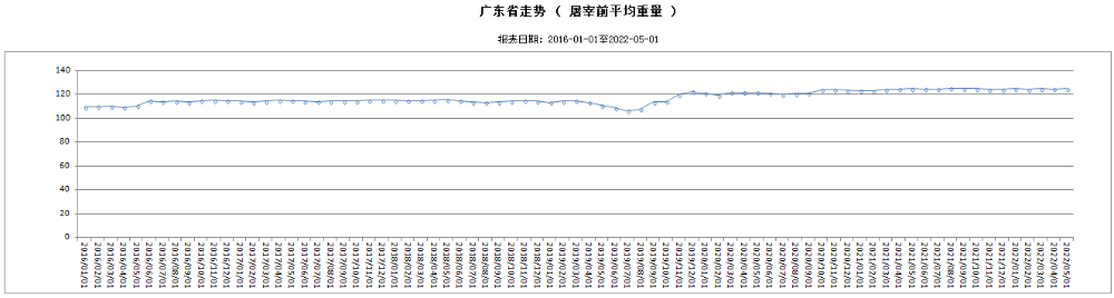 5月份,跟蹤監(jiān)測(cè)的316家生豬定點(diǎn)屠宰企業(yè)生豬屠宰前平均重量124.80公斤,環(huán)比上升0.18%。