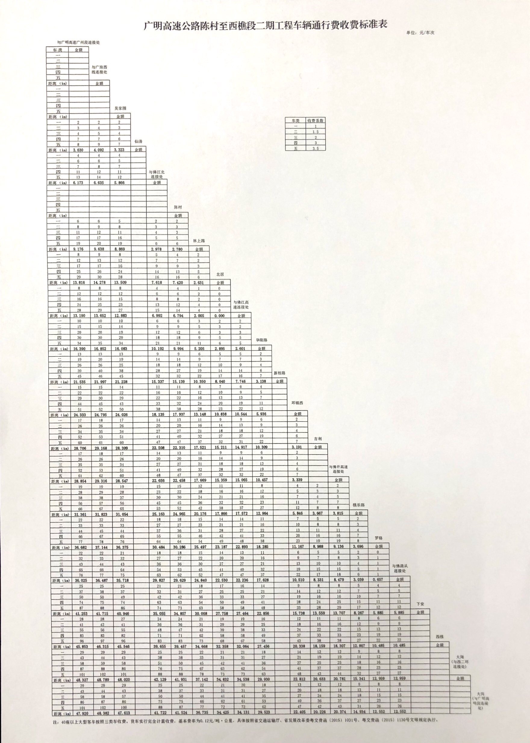 2.?廣明高速公路陳村至西樵段二期工程車輛通行費(fèi)收費(fèi)標(biāo)準(zhǔn)表