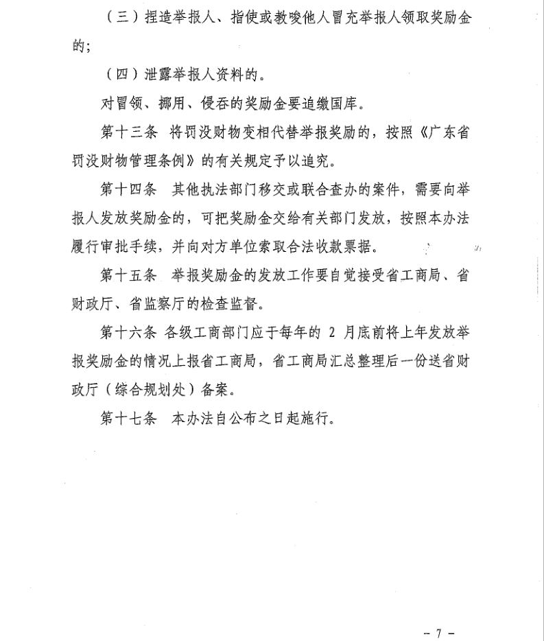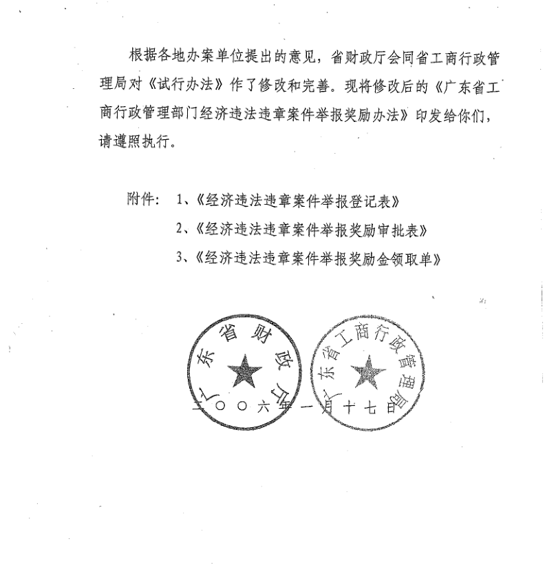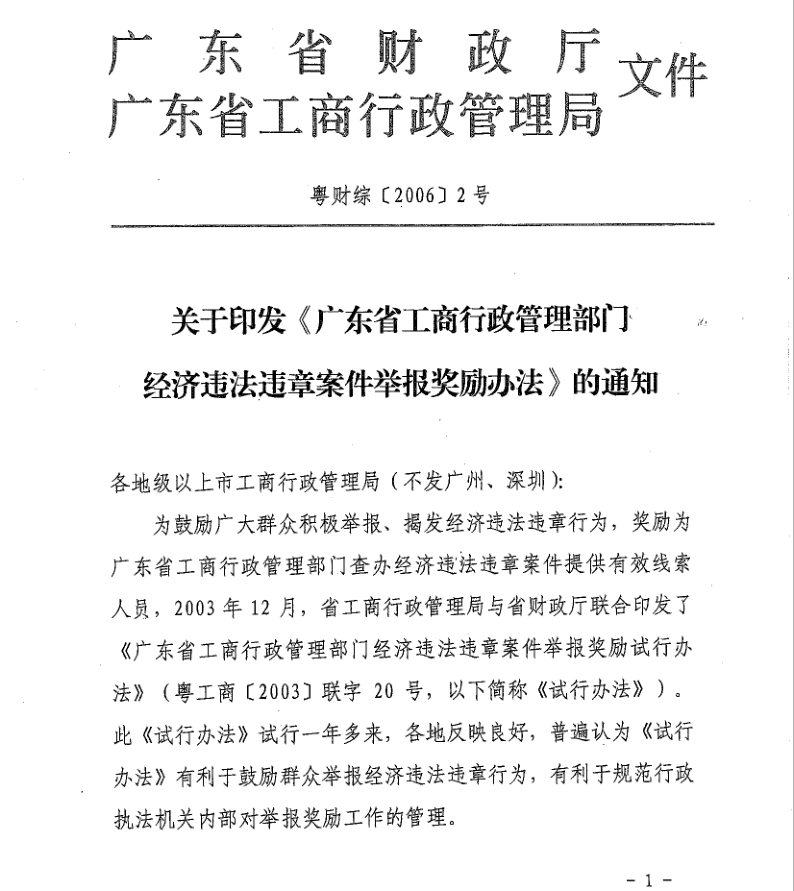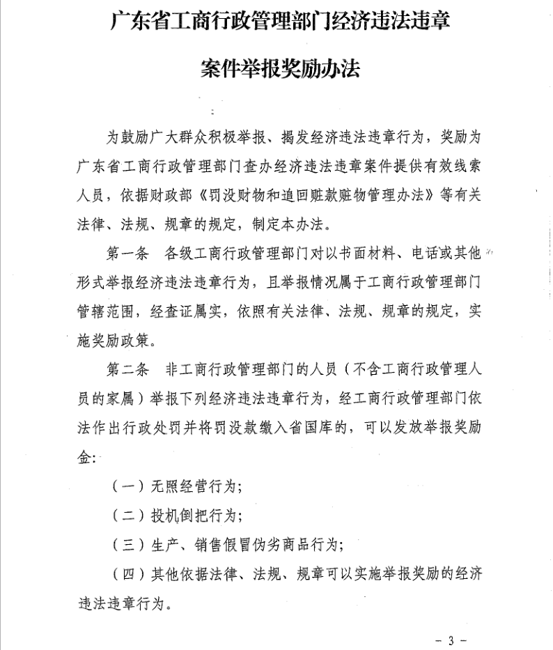 廣東省工商行政管理部門(mén)經(jīng)濟(jì)違法違章案件舉報(bào)獎(jiǎng)勵(lì)辦法