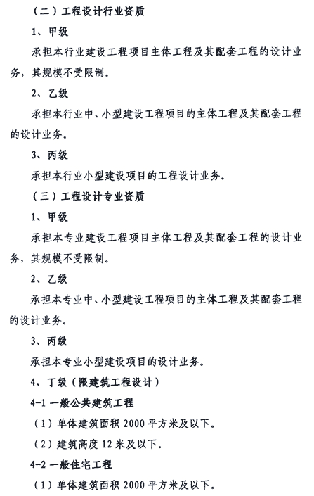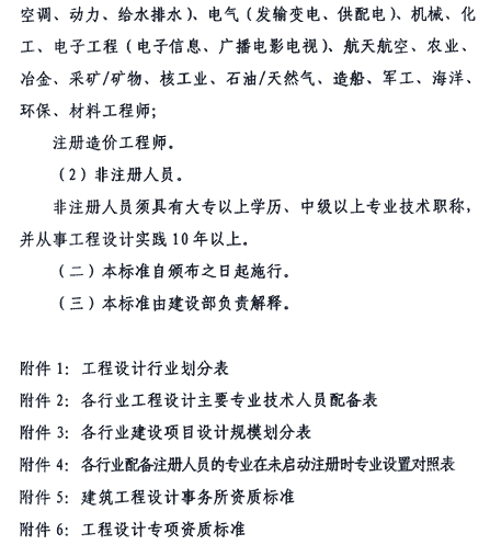 根據(jù)《建設(shè)工程勘察設(shè)計管理條例》和《建設(shè)工程勘察設(shè)計資質(zhì)管理規(guī)定》,我部制定了《工程設(shè)計資質(zhì)標(biāo)準(zhǔn)》,現(xiàn)印發(fā)給你們,請遵照執(zhí)行。原《關(guān)于頒發(fā)工程勘察資質(zhì)分級標(biāo)準(zhǔn)和工程設(shè)計資質(zhì)分級標(biāo)準(zhǔn)的通知》(建設(shè)[2001]22號)中“工程設(shè)計資質(zhì)分級標(biāo)準(zhǔn)”同時廢止。其他有關(guān)規(guī)定與本標(biāo)準(zhǔn)不符的,以本標(biāo)準(zhǔn)為準(zhǔn)。執(zhí)行中有何問題,請與我部建筑市場管理司聯(lián)系。