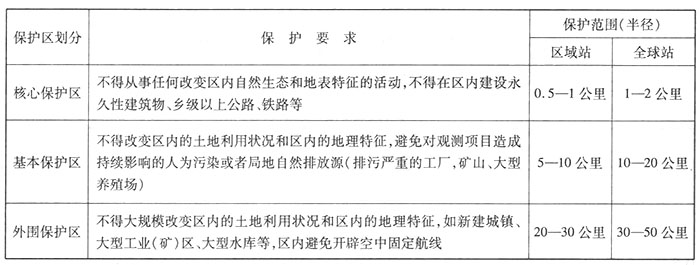 2.大氣本底臺(tái)站保護(hù)區(qū)劃分和保護(hù)標(biāo)準(zhǔn)