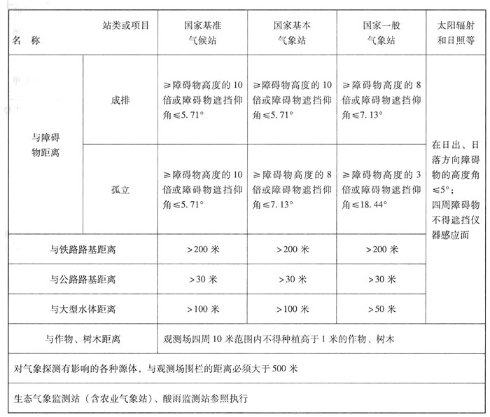 注:“障礙物”是指建筑、作物、樹木等影響觀測場氣流通暢或探測資料代表性、準(zhǔn)確性的物體。