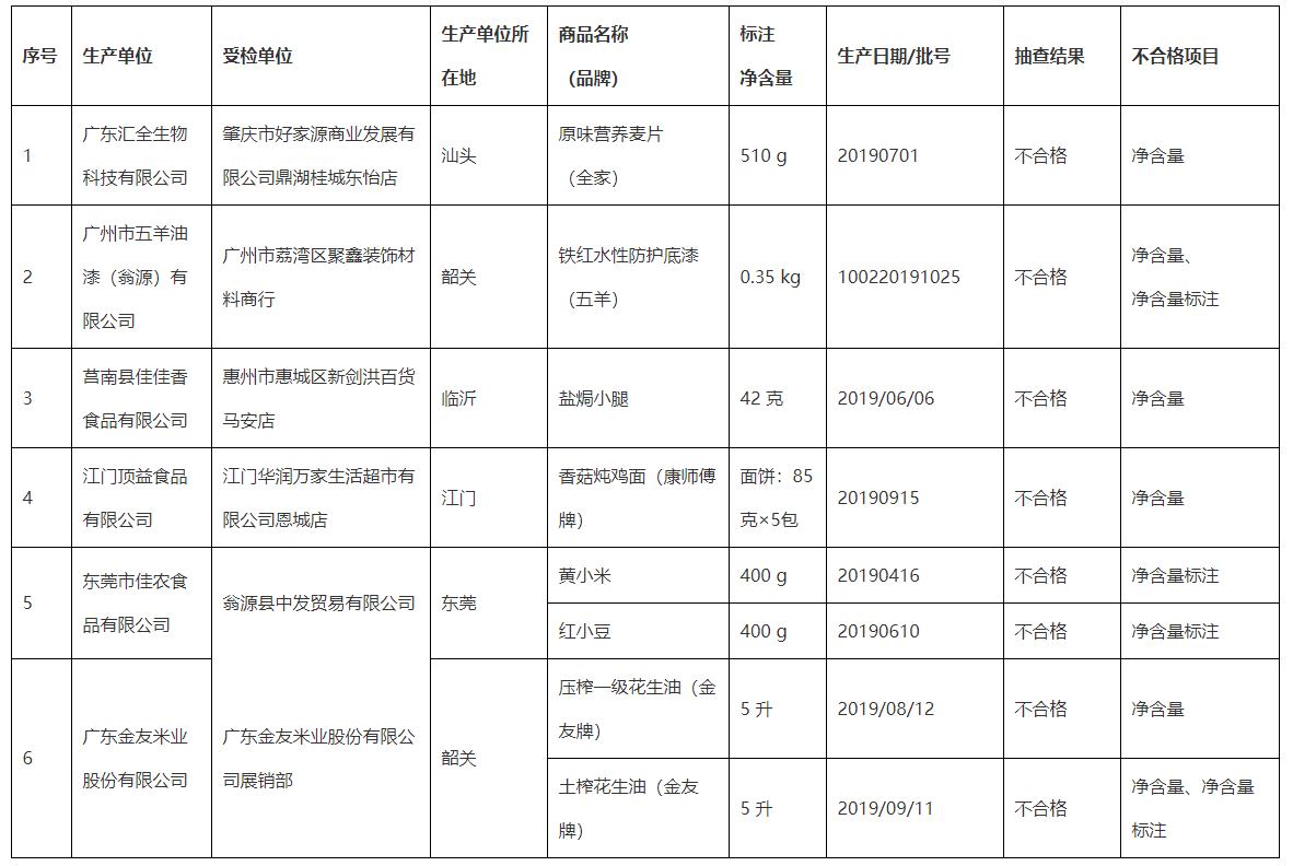 廣東省市場監(jiān)督管理局關于2019年度定量包裝商品凈含量省級計量專項監(jiān)督抽查結(jié)果的通告