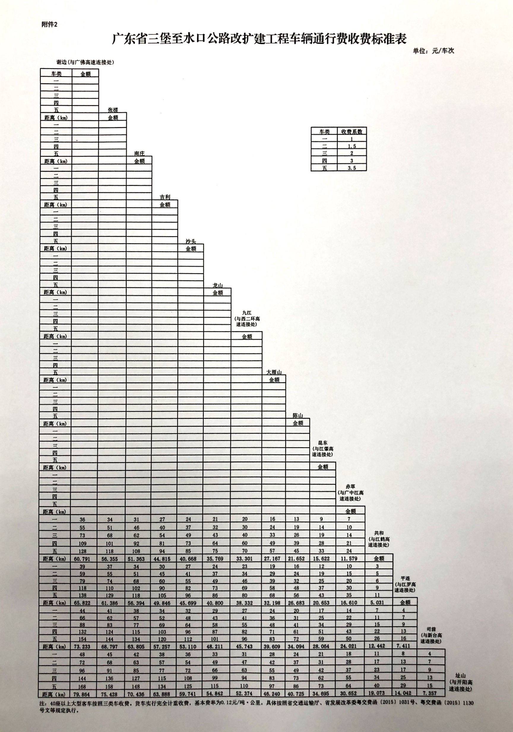 2.廣東省三堡至水口公路改擴(kuò)建工程車輛通行費(fèi)收費(fèi)標(biāo)準(zhǔn)表