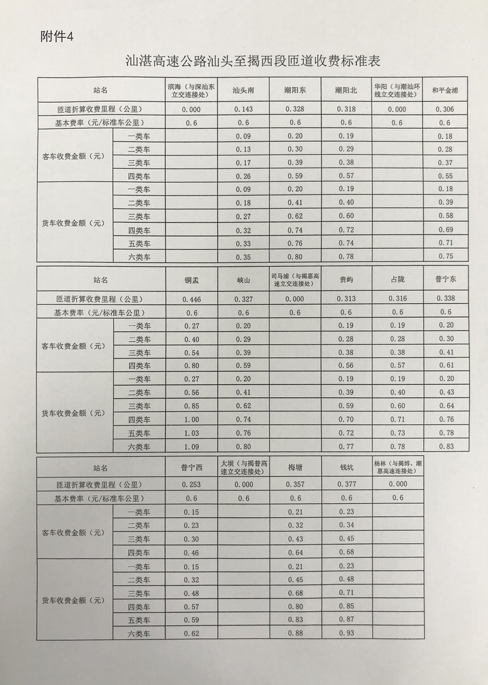 4.汕湛高速公路汕頭至揭西段匝道收費(fèi)標(biāo)準(zhǔn)表
