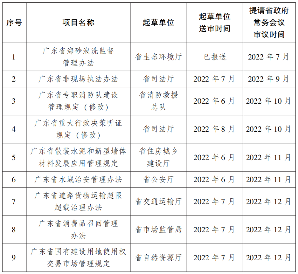 廣東省人民政府2022年度制定規(guī)章計劃